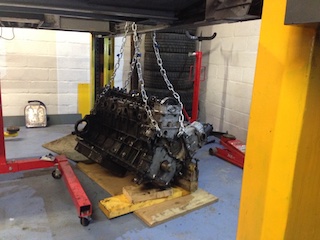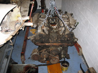 I first started out by trying to use the lift to raise the head off the block against the engine's own weight. That didn't work....